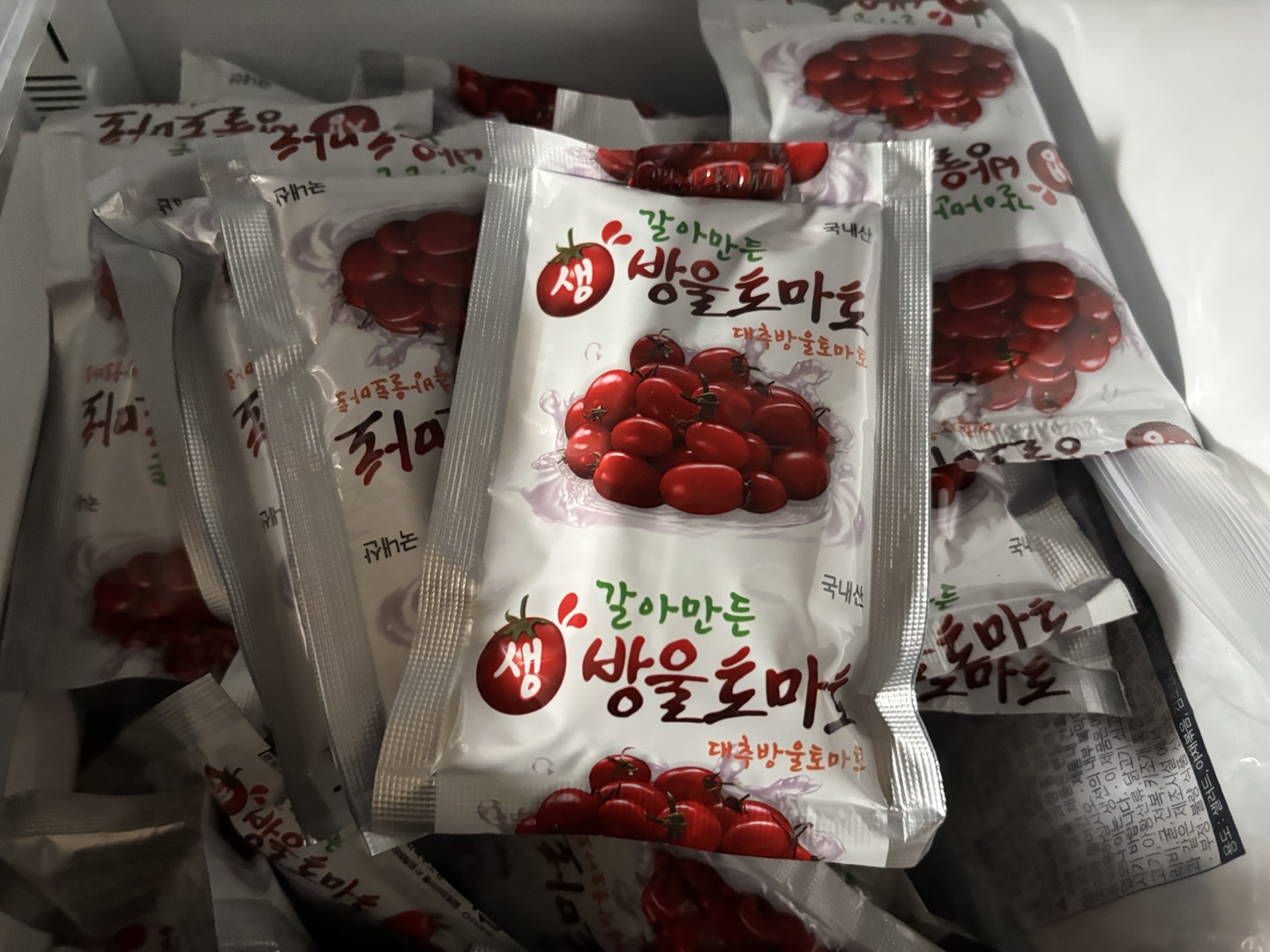 위에 사진처럼 먹기 좋게 1팩씩 포장되어 있기 때문에 평소에 토마토가 건강에 좋은 것은 알지만 맛이 없어 안 먹던 분도 부담 없이 맛있게 먹을 수 있습니다.