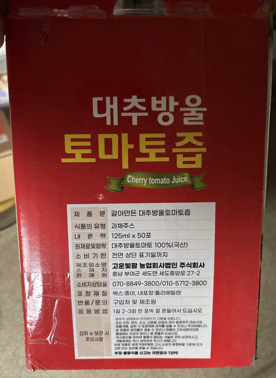 맛도 좋고 건강에도 좋고 먹기도 수월한 "갈아 만든 대추방울토마토즙" (부여군 세도면 특산물) 제품 진짜 추천합니다.