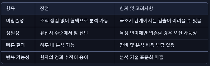 📋 ctDNA 진단의 장점과 한계