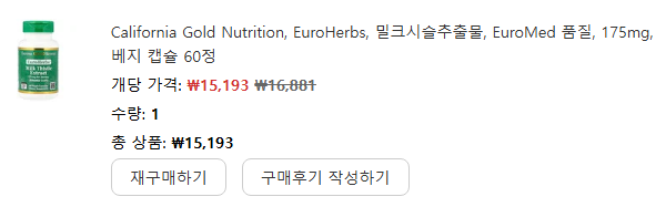California Gold Nutrition 밀크시슬 제품은 간 건강 관리, 피로 회복, 숙취 완화에 도움을 줄 수 있는 복합 영양제로, 특히 야근이나 음주가 잦은 직장인에게 적합하다는 평가가 많았습니다. 부작용이 적고 성분 조합이 뛰어나며, 꾸준히 복용할 경우 체감 효과가 있다는 점에서 긍정적인 리뷰가 다수였으며, 제가 직접 구매해 보니 가성비 좋은 추천할만한 제품이었습니다.