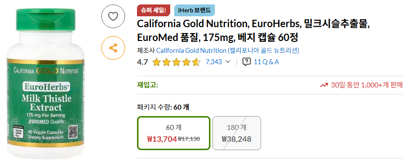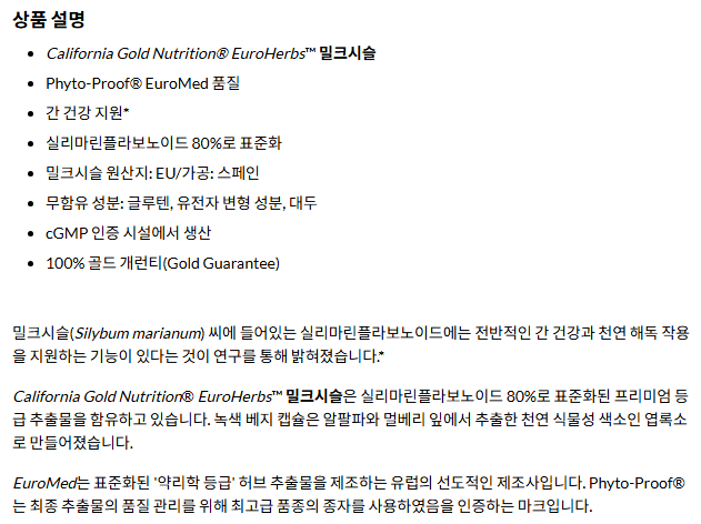 California Gold Nutrition 밀크시슬(내돈내산 영양제 솔직 리뷰)