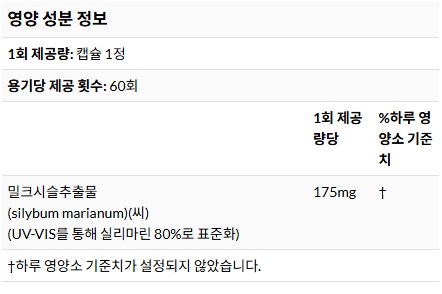• 주성분: 실리마린(밀크시슬 추출물)